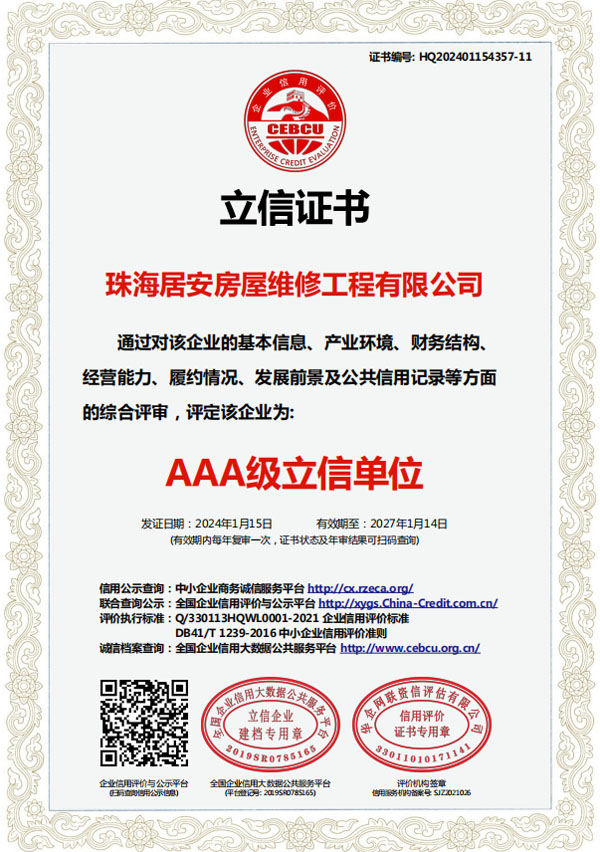 珠海居安房屋維修工程有限公司成立于2020年,是一家專注房屋維修的公司。我們擁有各類型專業(yè)人才,業(yè)務包括老舊建筑翻新改造、外墻空鼓修復、防水幕墻養(yǎng)護、外墻預置構件拆除更換、供排水管網(wǎng)改造、墻面翻新、鋼制結(jié)構建筑構建及折除,外墻清洗及裝修裝飾。